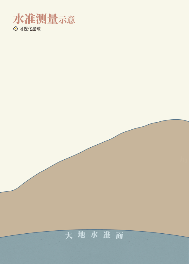 我們所測量的“高程”是海拔,即相對于平均海水面的高度,在陸地區(qū)域則由海平面延伸形成大地水準(zhǔn)面——假想的海平面。在這個面上重力位處處相等(重力等位面),水不會流動。由于地球物質(zhì)分布不均,這個面本身是高低不平的。