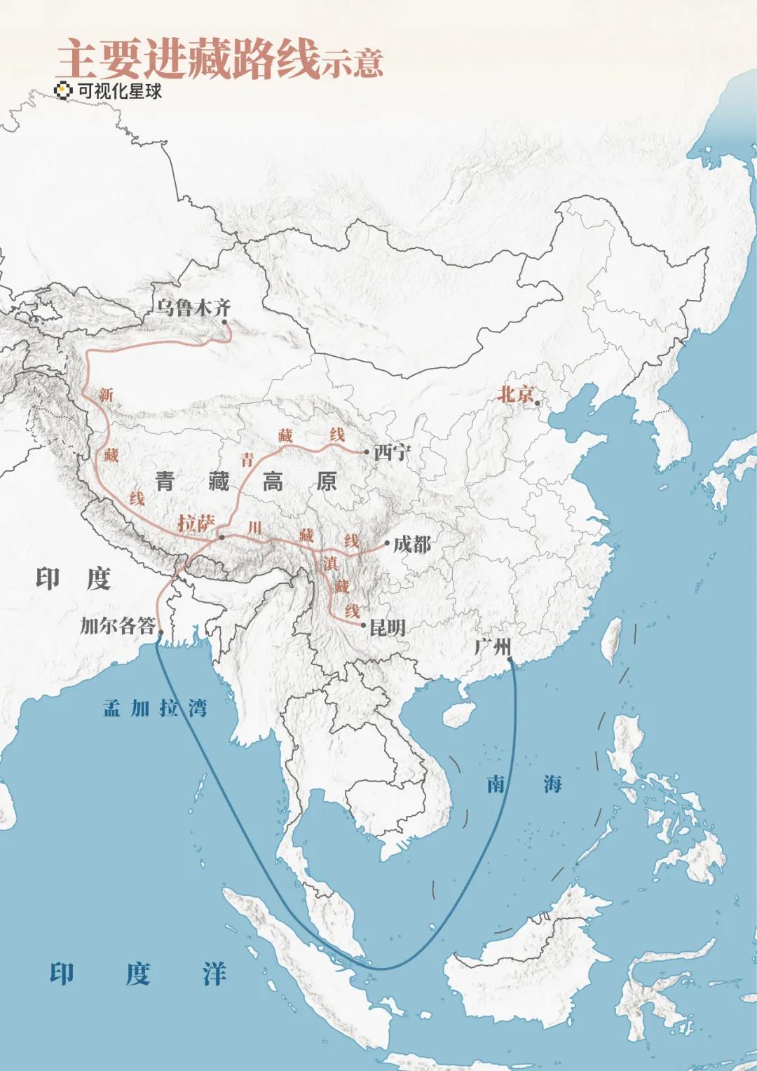 由于珠峰位于中國邊境,因此測量珠峰高程對于維護(hù)領(lǐng)土主權(quán)也有著重要意義。新中國剛成立時,內(nèi)地到西藏的陸路交通困難重重,經(jīng)海路繞道印度進(jìn)藏甚至更容易。