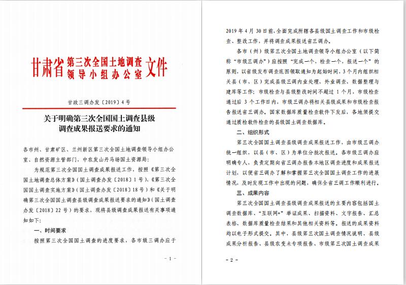 關(guān)于明確第三次全國(guó)國(guó)土調(diào)查縣級(jí)調(diào)查成果報(bào)送要求的通知