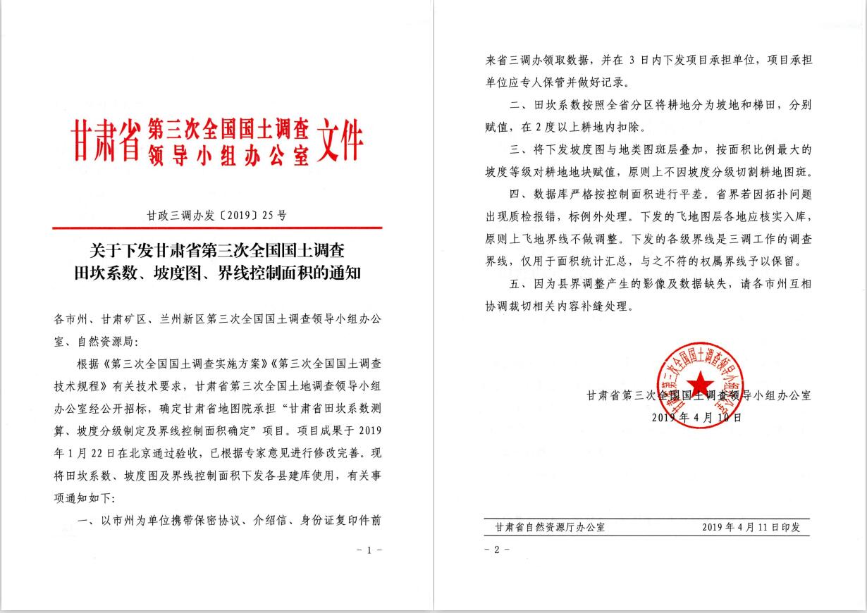關(guān)于下發(fā)甘肅省第三次全國(guó)國(guó)土調(diào)查田坎系數(shù)、坡度圖、界線控制面積的通知