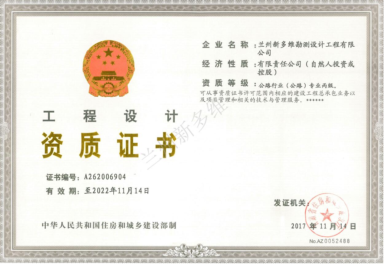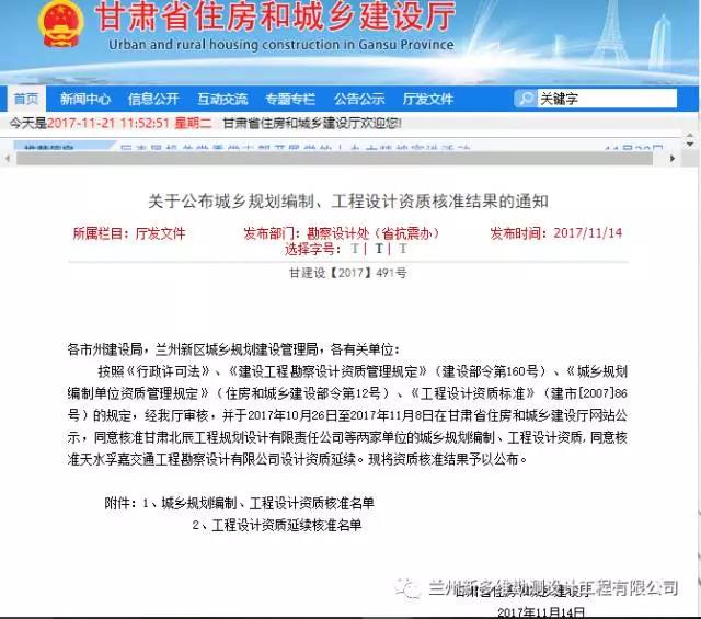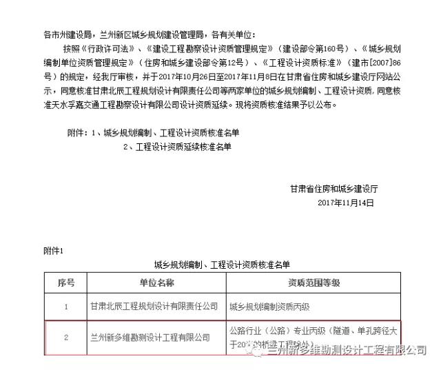 日前,甘肅省住房和城鄉(xiāng)建設(shè)廳正式核準(zhǔn)我公司的公路(行業(yè))工程設(shè)計(jì)資質(zhì)。