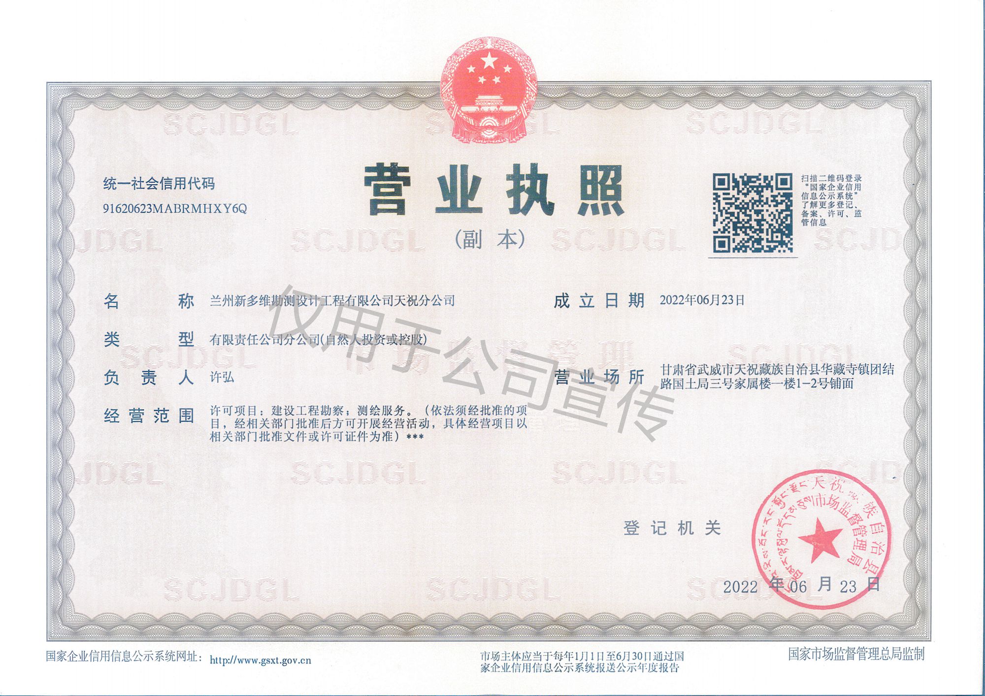 天祝分公司成立于2022年。自成立以來與各項(xiàng)目單位和客戶個(gè)人良好合作,在短時(shí)期內(nèi)優(yōu)質(zhì)、高效的完成勘測(cè)定界、竣工測(cè)繪、不動(dòng)產(chǎn)測(cè)繪。在上級(jí)主管部門的關(guān)心、幫助和指導(dǎo)下,經(jīng)過公司員工共同努力,業(yè)務(wù)范圍和服務(wù)領(lǐng)域迅速擴(kuò)展,同時(shí)在多個(gè)縣區(qū)長(zhǎng)期開展業(yè)務(wù)。天祝縣高標(biāo)準(zhǔn)農(nóng)田(梯田)建設(shè)項(xiàng)目(一期、二期)竣工復(fù)核測(cè)繪、天??h岔口驛建筑用砂石料礦土方量測(cè)繪項(xiàng)目。全部保質(zhì)保量完成了任務(wù),技術(shù)力量得到了社會(huì)各界的全面認(rèn)可。
